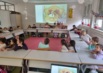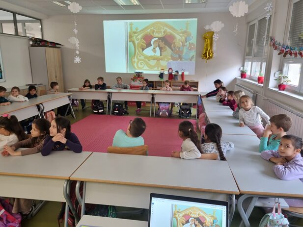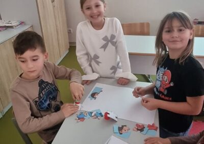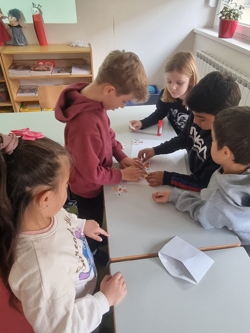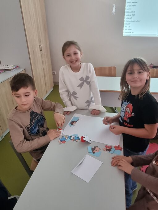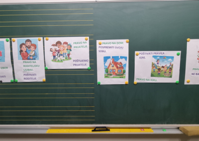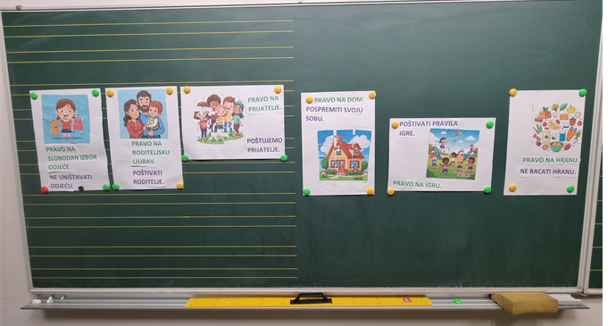 Učenici su slušali spomenutu bajku uz slikovni prikaz, a nakon toga su odgovarali na pitanja pomoću wordwall kviza. U kvizu je bilo pitanja u kojima su trebali prepoznati dječje pravo koje je bilo prekršeno u bajci. Sljedeći zadatak uključivao je promišljanje o pravima, ali i o dužnostima. Učenici su radili u skupinama, izrađivali su slagaricu sa slikama dječjih prava. Pojedinu zadanu sliku morali su upotpuniti rečenicom o pravu i dužnosti koja je proizlazila iz tog prava. Svaka je skupina ponosno prezentirala svoj uradak.