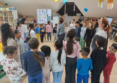 U veseloj atmosferi ispunjenoj glazbom i smijehom zajedno smo izveli pjesmu Oj, Suza Suzena primjenjujući lagane plesne pokrete. Kako bismo prizvali blagdanski duh i posjet Svetog Nikole, u nastavku radionice naučili smo i zajedno otpjevali pjesmicu Pahuljice padajte.