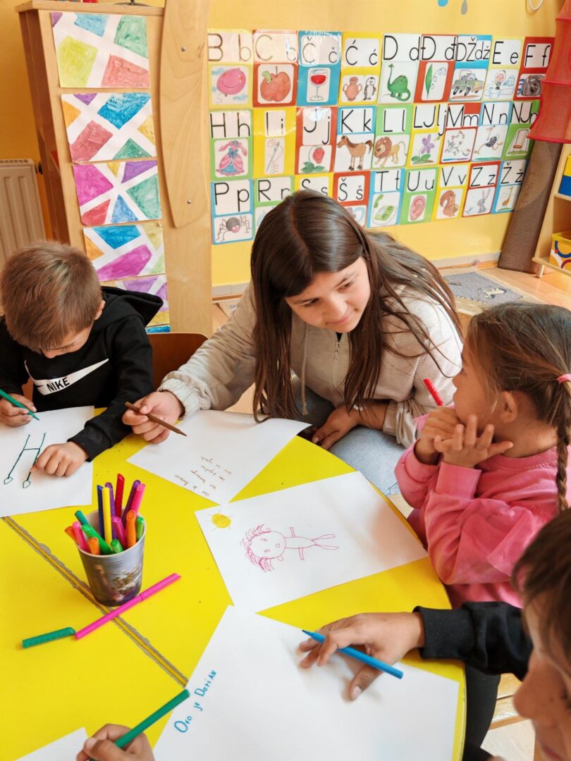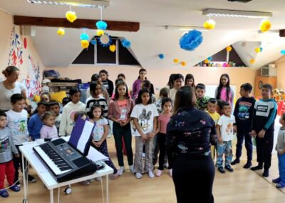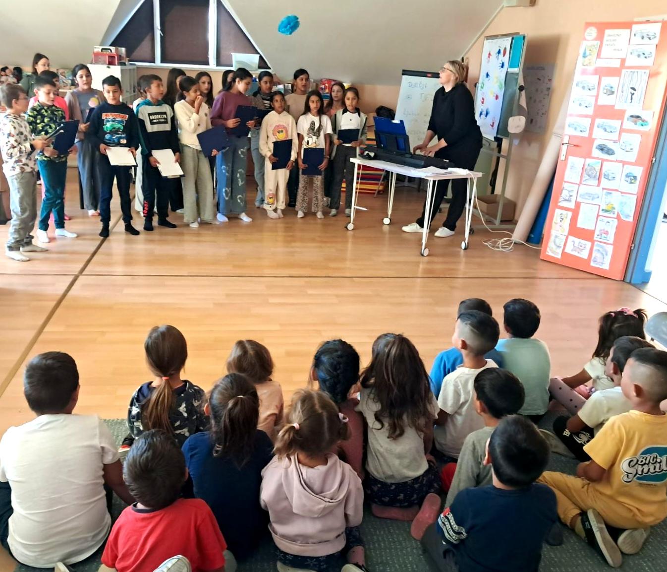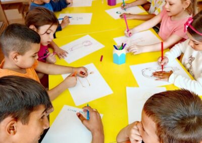 Umjetnost je zavladala vrtićem u srijedu, 8. listopada. Na početku druženja učenici pjevačkog zbora  OŠ Kuršanec s voditeljicom M. Šobak Potočnjak  predstavili su se vrtićarcima dvjema prigodnim pjesmama:  “Nabrala je jagode petrovke“ i „Djeca su ukras svijeta“.  U veseloj i stvaralačkoj atmosferi nastavilo se zajedničko druženje velikih i malih prijatelja te je održana likovna i glazbena radionica u skupinama „Trešnjice“ i „Pčelice“. Na glazbenoj radionici pjevale su se pjesmice „Mi plešemo i pjevamo“ te „Mi smo djeca vesela“ uz jednostavnije plesne pokrete. Na likovnoj radionici u skupini „Pčelice“ predškolci su crtali svoje prijatelje uz podršku učenika koji pohađaju likovnu grupu.