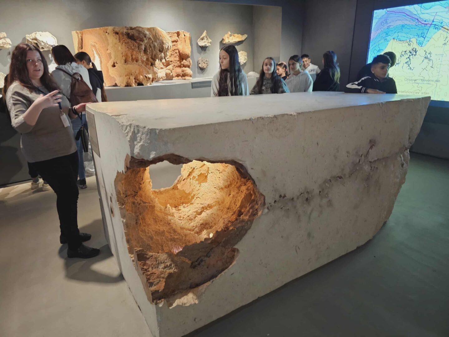 Sljedeće odredište bio je Prirodoslovni muzej gdje ih je dočekalo stručno vodstvo koje je učenicima na zanimljiv i razumljiv način približilo svijet prirode. Učenici su razgledali brojne izloške iz područja prirode, geologije i paleontologije te su s velikim zanimanjem promatrali preparirane životinje, minerale i fosile. Posebnu pozornost privukla im je zbirka fosila dinosaura i geološki postav gdje su mogli vidjeti razne vrste stijena i minerala te naučiti kako oni nastaju. U dijelu posvećenom fauni Hrvatske, učenici su prepoznali mnoge životinje o kojima su učili na nastavi, a kroz razgovor s kustosima ponovili su i proširili svoje znanje o prilagodbi živih bića različitim staništima.