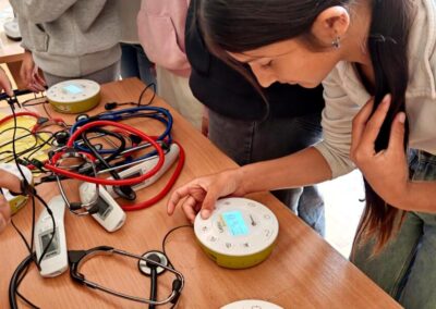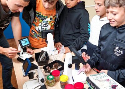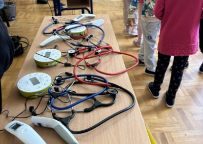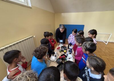 Radionice su bile organizirane kroz tri radne stanice, gdje su učenici mogli istraživati i eksperimentirati s različitim znanstvenim instrumentima i uređajima. Na prvoj stanici promatrali su udaljene objekte pomoću dalekozora i durbina, isprobavali virtualne naočale te  sudjelovali u edukativnim igrama koje su potaknule razmišljanje i timski rad. Na drugoj stanici su pod mikroskopom promatrali školjke, kukce i uzorke vode, što im je omogućilo da otkriju fascinantne detalje svijeta koji je često skriven oku. Na trećoj stanici imali su priliku upoznati i isprobati medicinske instrumente poput toplomjera, spirometra i stetoskopa te naučiti koliko su ti alati važni za zdravlje i svakodnevni život.