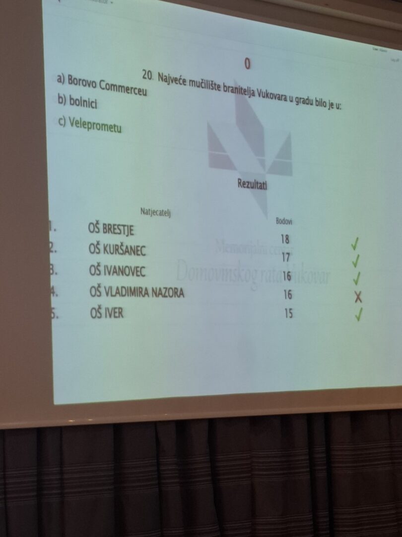Program smo priveli kraju u Školi mira, nakon koje je uslijedio kviz znanja. Naši su učenici pokazali izvrsno poznavanje naučenog gradiva i osvojili visoko drugo mjesto, na što smo iznimno ponosni.