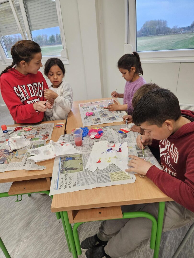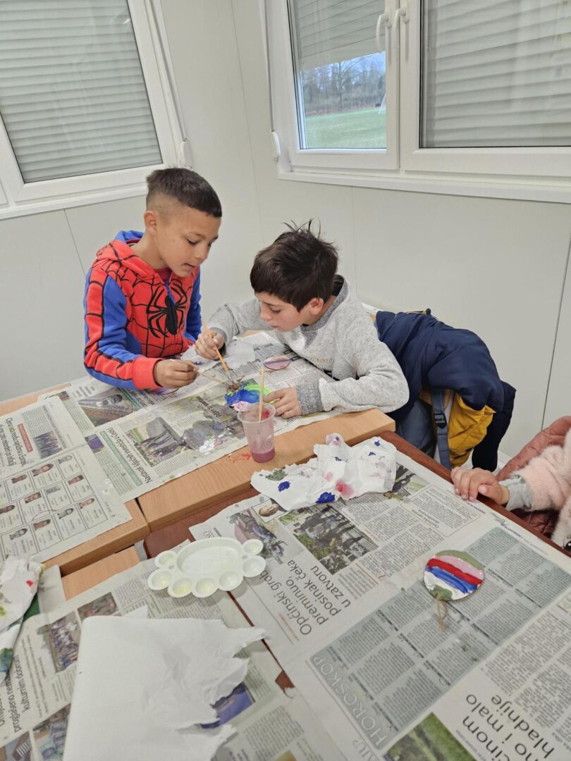 U petak, 27. 3. 2026. godine, provedena je radionica koju su osmislile edukatorica rehabilitatorica Anja Rakuša i učiteljica Zvonka Rakuša za učenike 1. b i PRO C razreda gdje su učenici pokazali svoju kreativnost u izradi čestitki i bojanju drvenih pisanica. Kroz igrokaz Zaboravljivi zeko Jadranke Čunčić-Bandov mlađi su učenici usvojili obilježja te vrste književnog teksta dok su oni nešto stariji ponovili već naučeno. Bojanje pisanica predstavljalo je izazov jer je trebalo malo strpljenja prilikom miješanja boja dok se nije dobila željena boja, a još više kad se trebalo čekati da se pisanica osuši s jedne strane te da se započne bojati i s druge strane. Svi učenici aktivno su sudjelovali u provedenim aktivnostima i vrijeme je brzo prošlo. Najslađi dio, čašćenje čokoladnim lizalicama, ostavili smo za kraj kako bismo na zaslužene praznike otišli u slatkim mislima. Ovom radionicom nastavljen je projekt „Sličnosti nas povezuju, a razlike obogaćuju“ te s nestrpljenjem očekujemo sljedeće druženje.